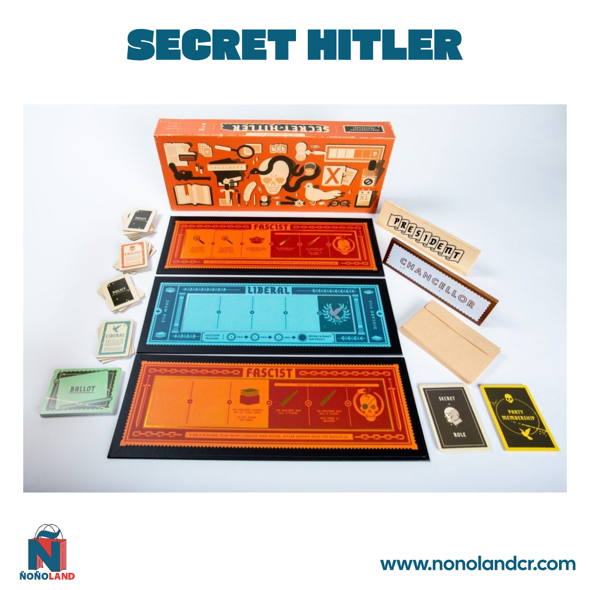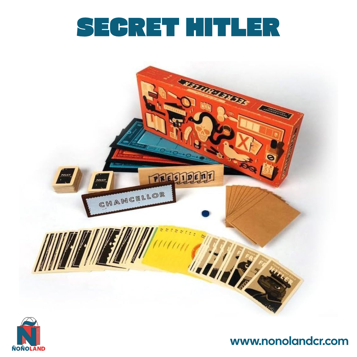 Hitler Secreto es un juego de deducción social para 5-10 personas sobre cómo encontrar y detener a Hitler y una toma de poder fascista.